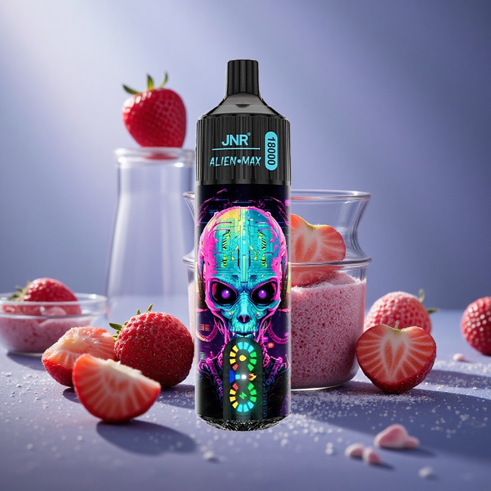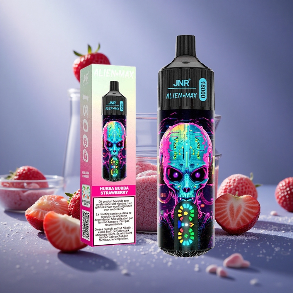 JNR Alien Max 18000 Puffs Vaporizador Descartável Hubba Bubba Morango com Dual Mesh Coil e 28ml de E-líquido