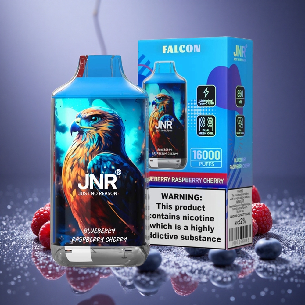 JNR Falcon 16000 Puffs Vape Descartável Mirtilo Framboesa Cereja com Bateria de 850 mAh e E-líquido de 22ml