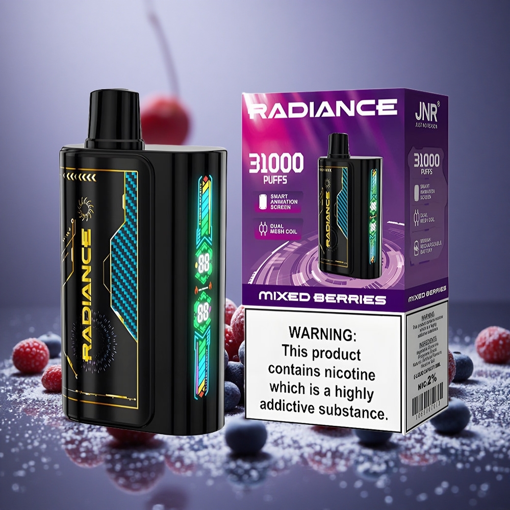 JNR Radiance 31000 Puffs Vape Descartável Bagas Misturadas com Tela Inteligente e Bateria Recarregável 950 mAh
