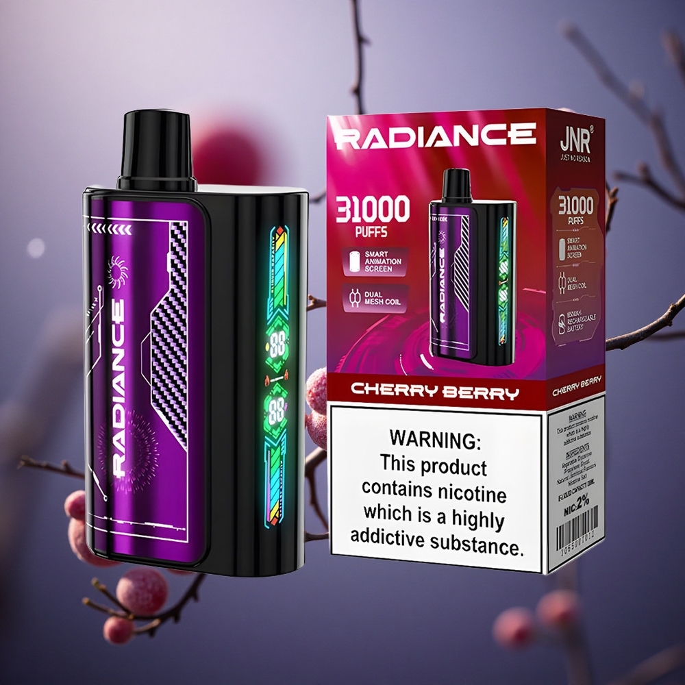 JNR Radiance 31000 Puffs Vape Descartável Cereja e Frutas Vermelhas com Tela Animada Inteligente e Bateria Recarregável 950 mAh
