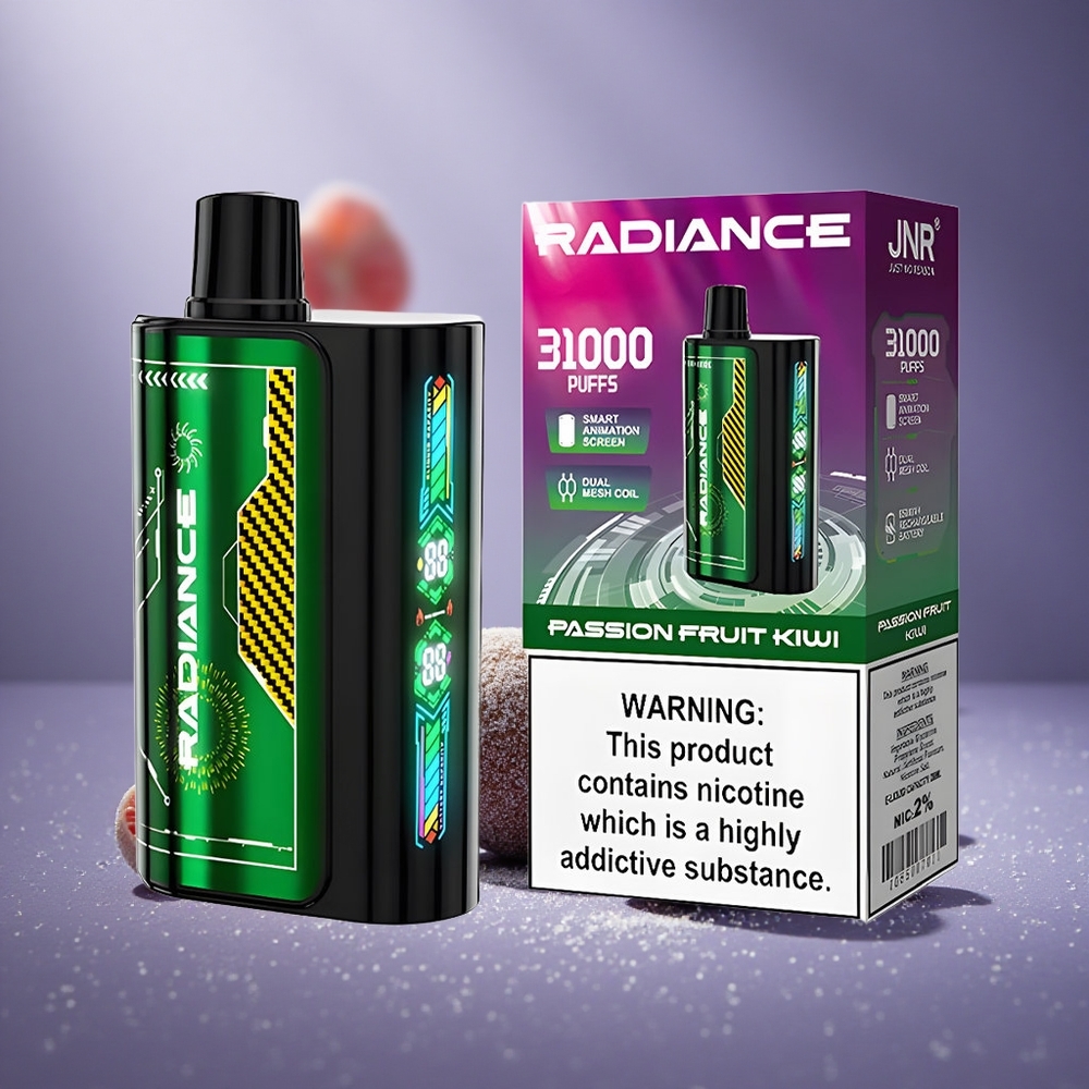 JNR Radiance 31000 Puffs Vape Descartável Maracujá Kiwi com Tela Inteligente e Bateria Recarregável 950 mAh