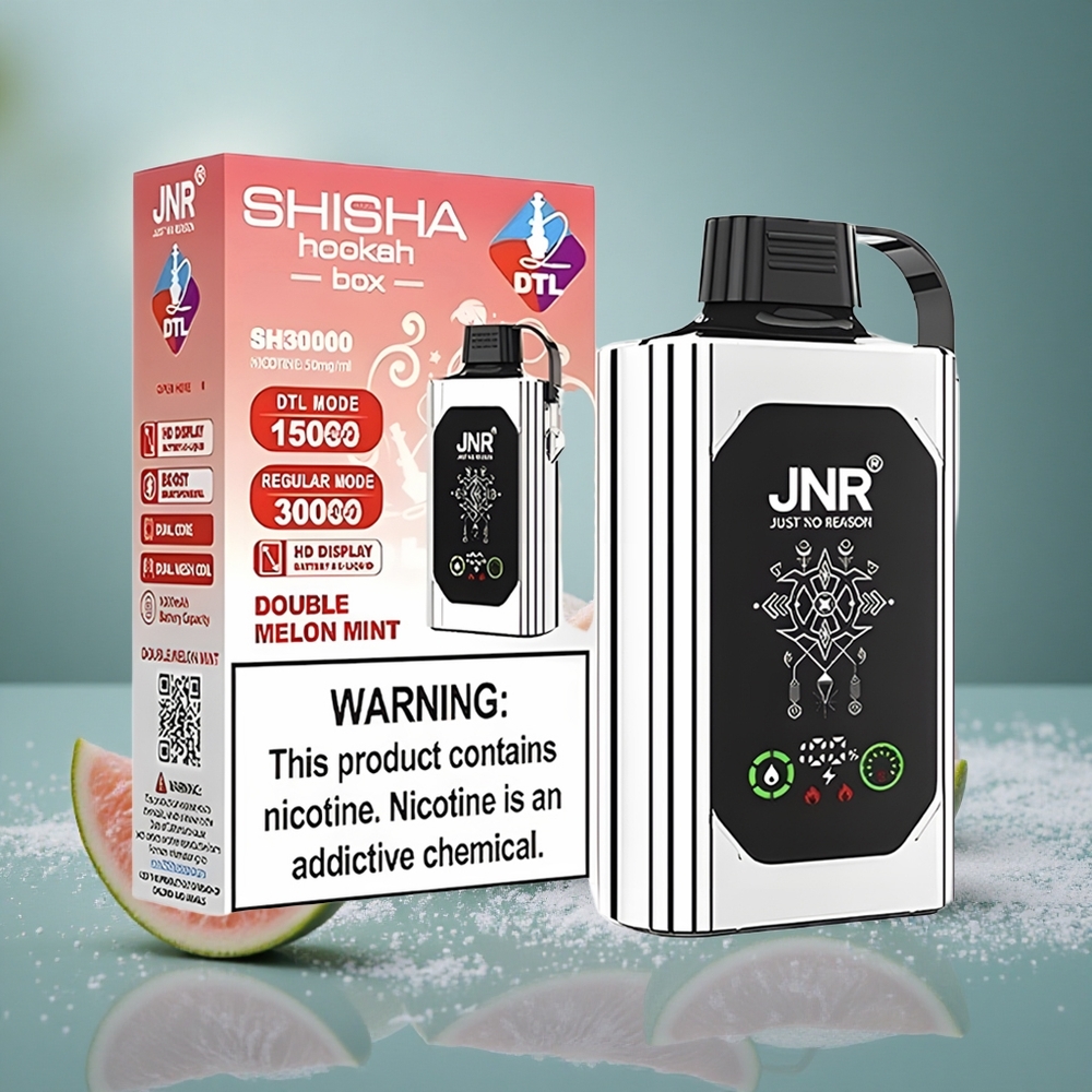 JNR Shisha Hookah Box 20500 Puffs Vape Descarga Rápida Tipo-C 25ml Duplo Melão Menta