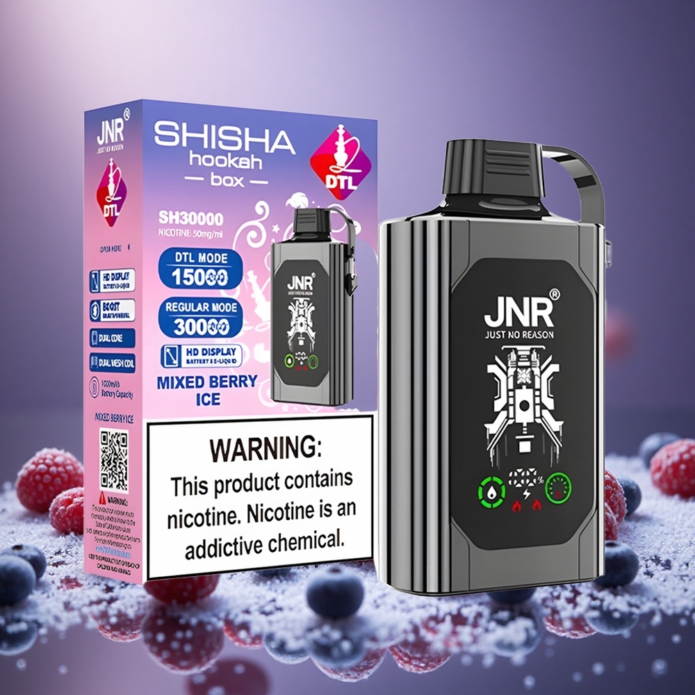 JNR Shisha Hookah Box 20500 Puffs Vape Descartável Misto Bagas Gelado com Tela HD, Bateria 1000mAh, Carregamento Tipo-C