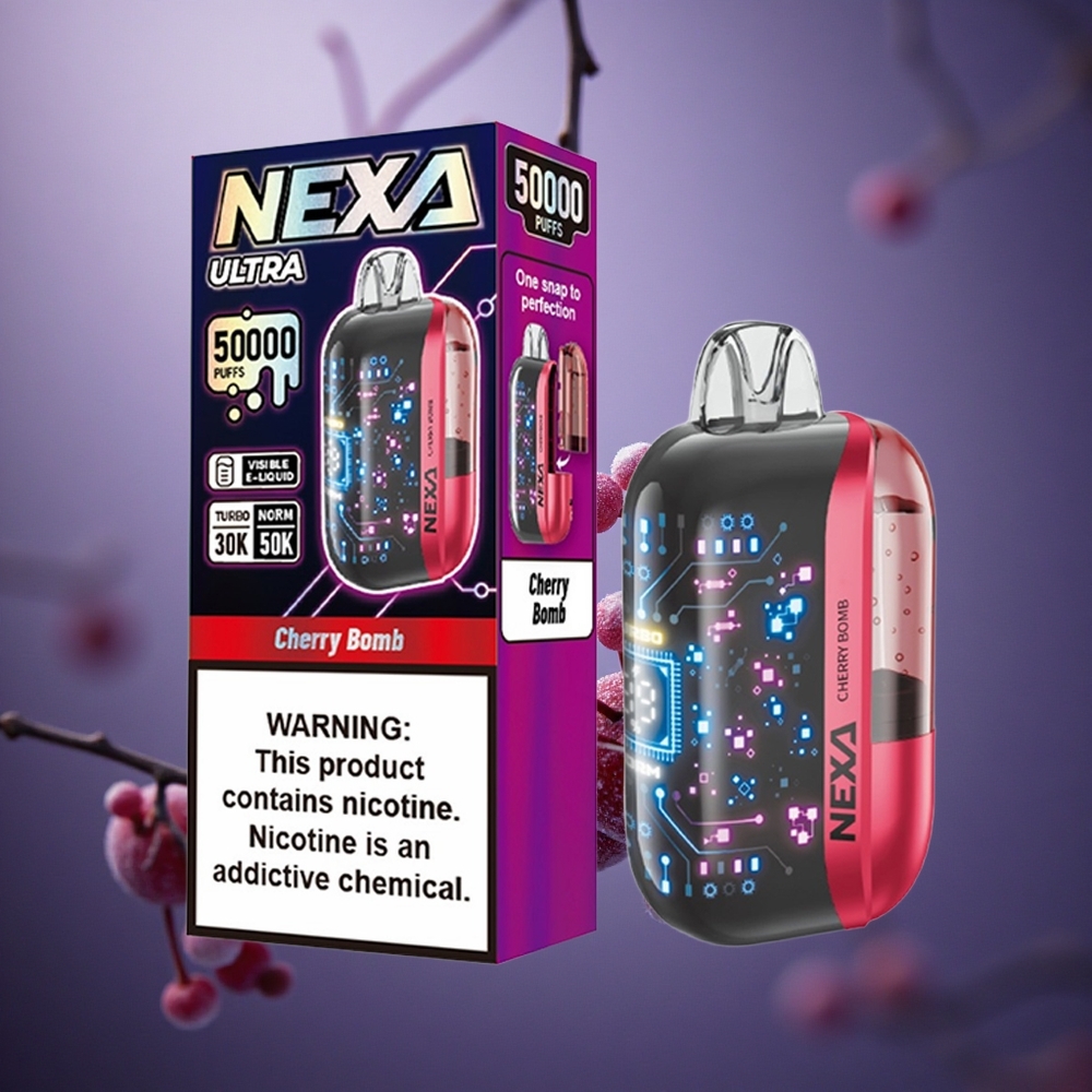 NEXA Ultra 50000 Puffs Vape Descartável Cereja Bomp com 20ml Capacidade Pré-preenchida e Tela 3D Curva