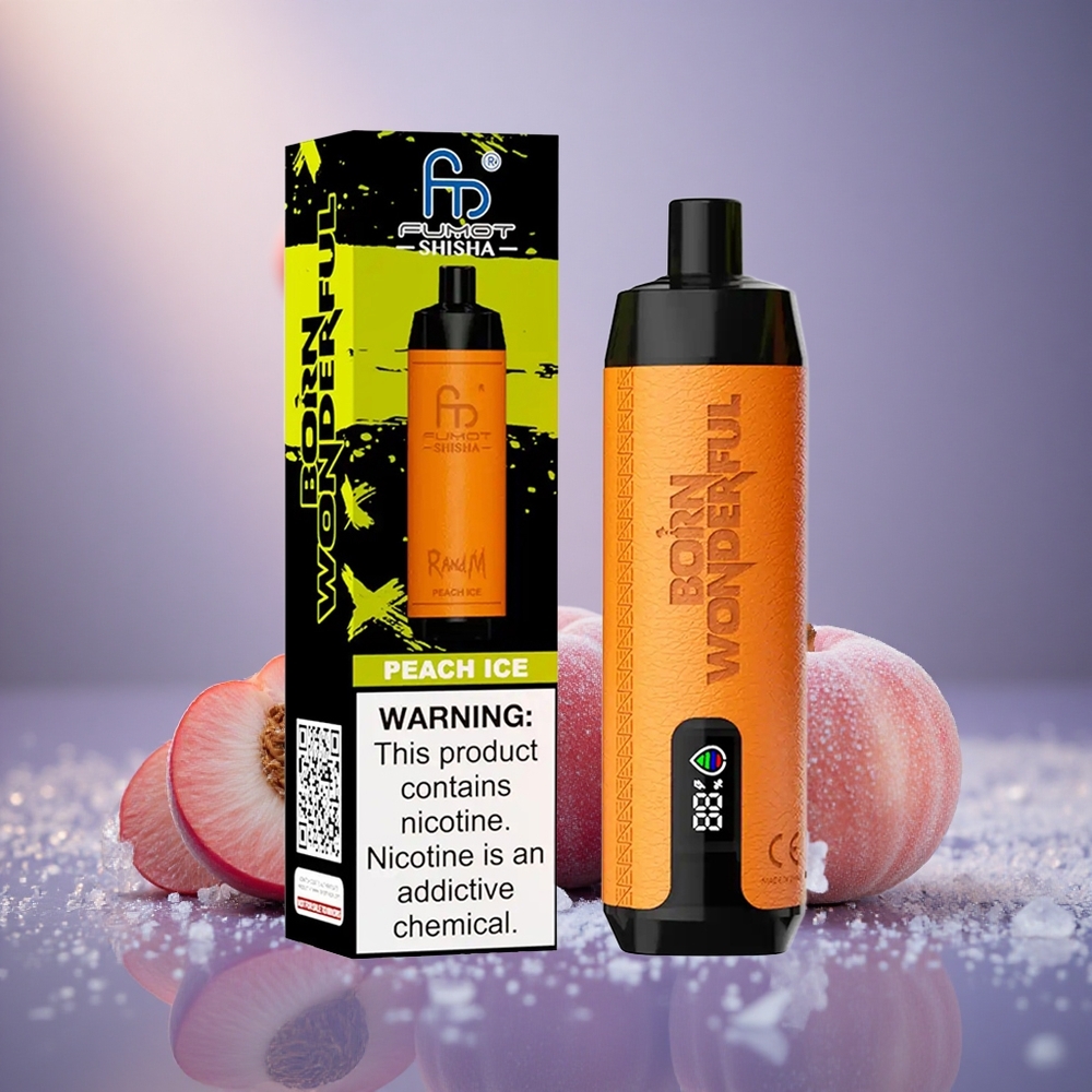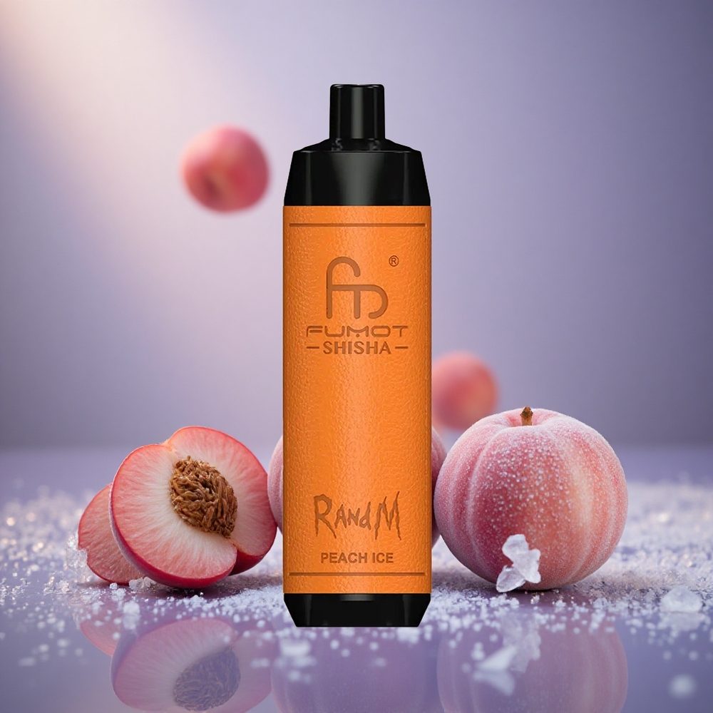 RandM Fumot Shisha 10000 Puffs Vape Descartável Pêssego Gelo com Indicador LED e Bateria 850 mAh