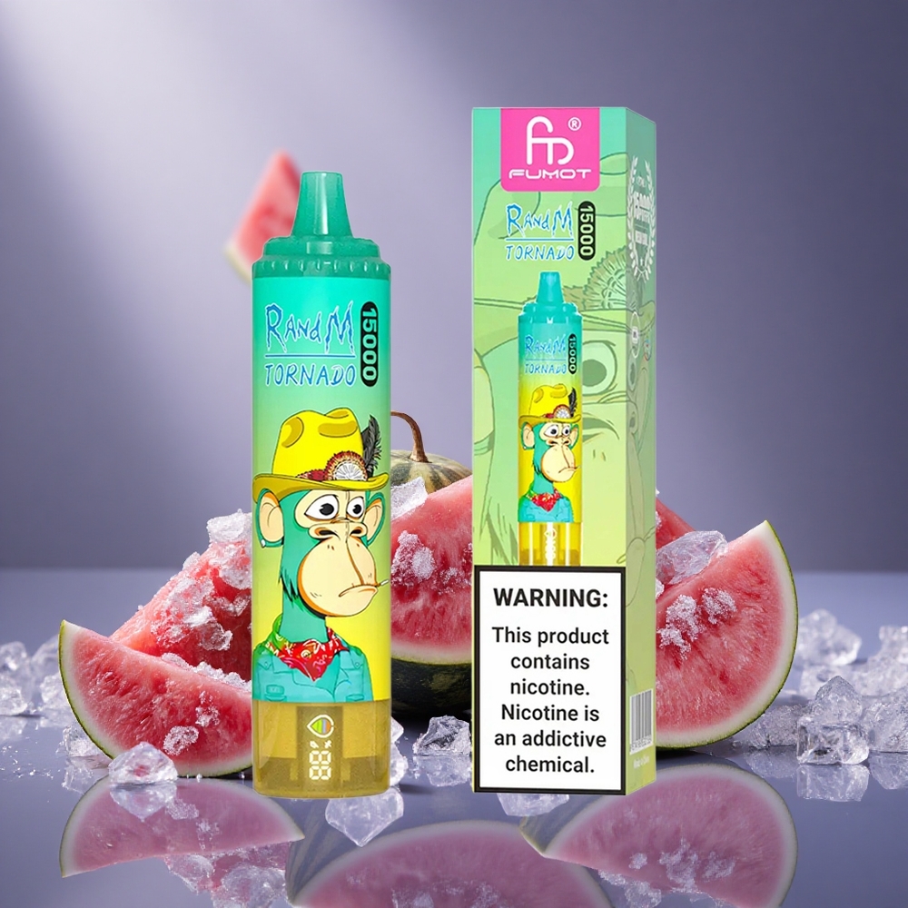 RandM Fumot Tornado 15000 Puffs Vape Descartável Melancia Gelo com 25ml e USB Type-C