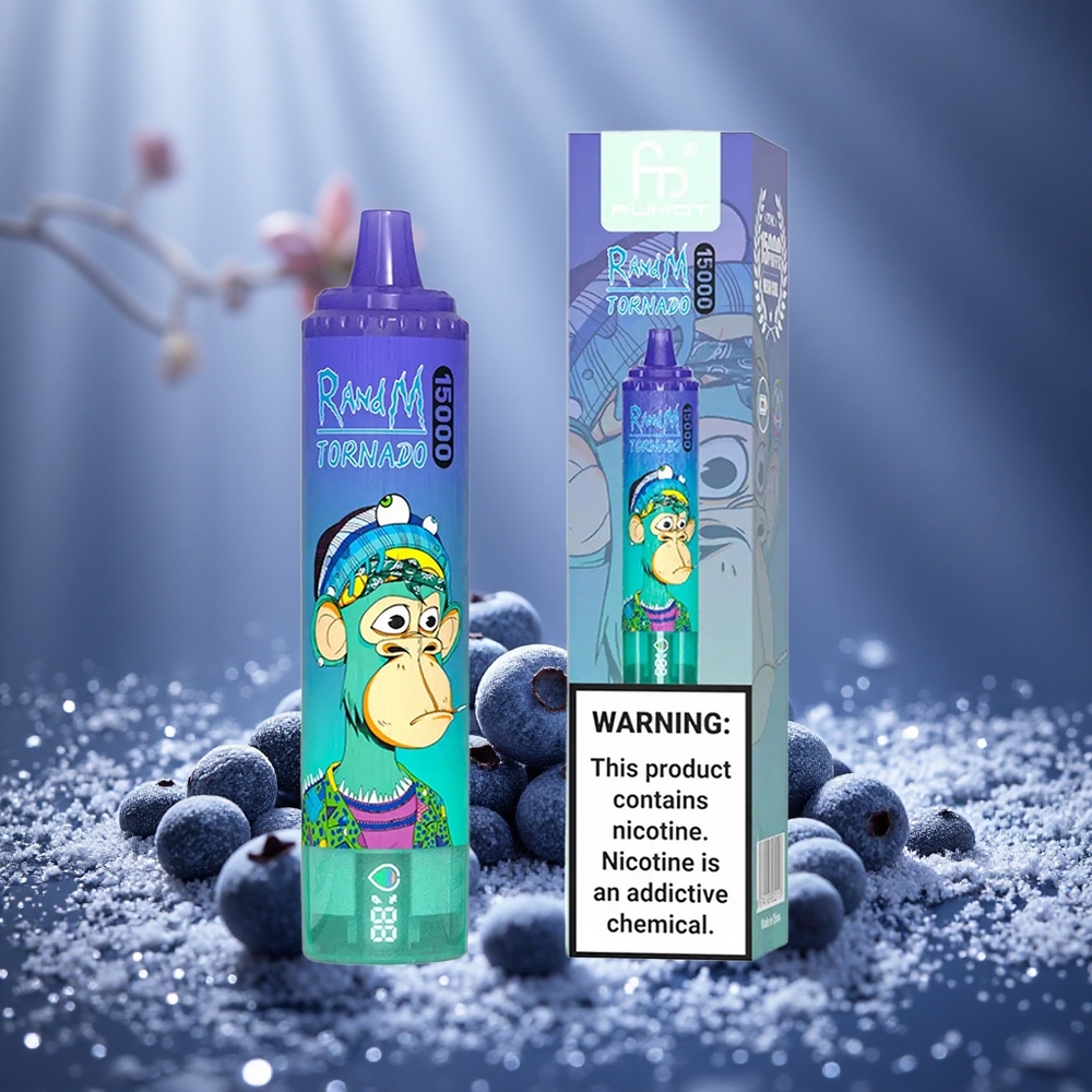 RandM Fumot Tornado 15000 Puffs Vape Descartável Mirtilo No Gelo com 25ml e Tela LCD