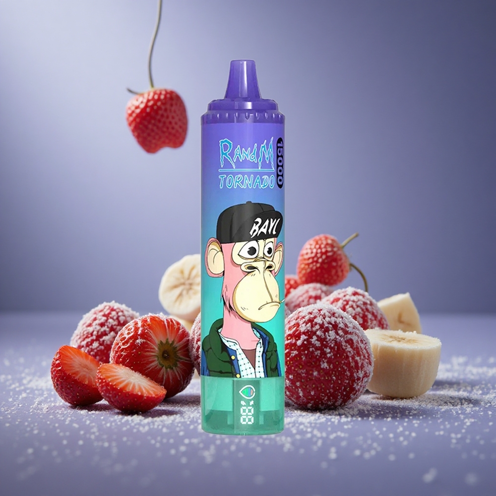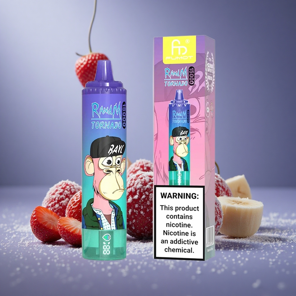 RandM Fumot Tornado 15000 Puffs Vape Descartável Morango Banana com 25ml e USB Tipo-C Recarregável
