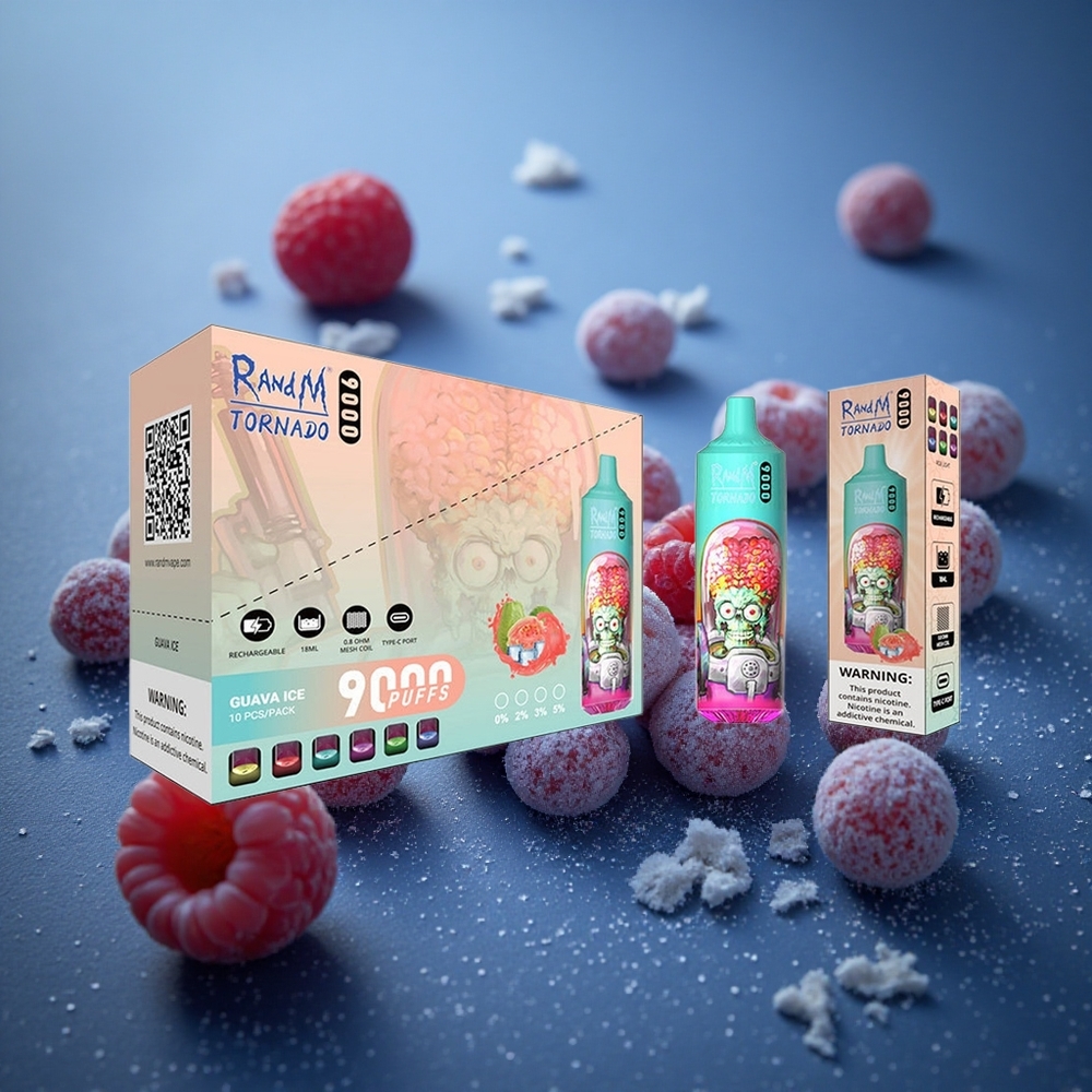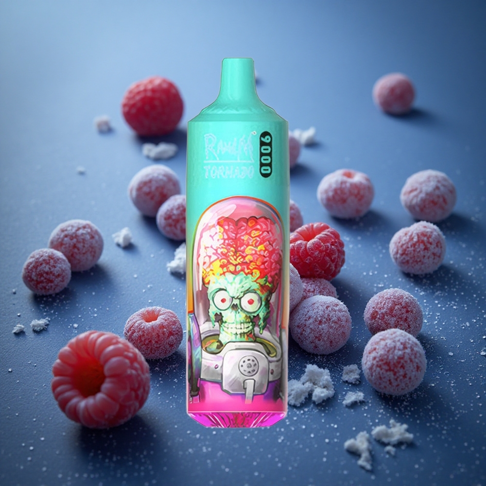 RandM Fumot Tornado 9000 Puffs Vape Descartável Azul Framboesa Azeda com Bateria Recarregável de 850 mAh e Display RGB Elegante