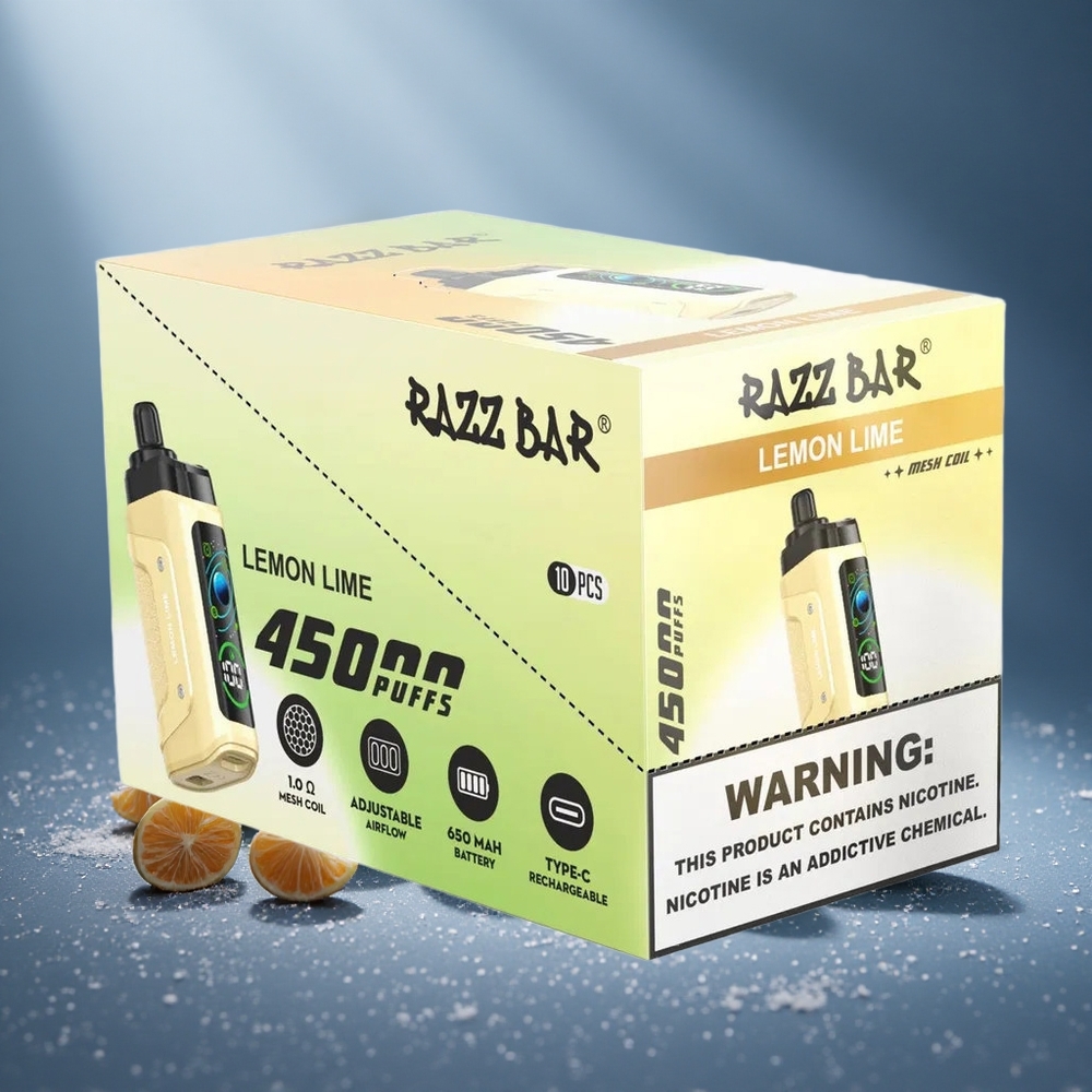 Razz Bar 45000 Puffs Vape Descartável Limão Lima com Bobina Mesh 1.0 Ohm e Bateria Recarregável 650 Mah